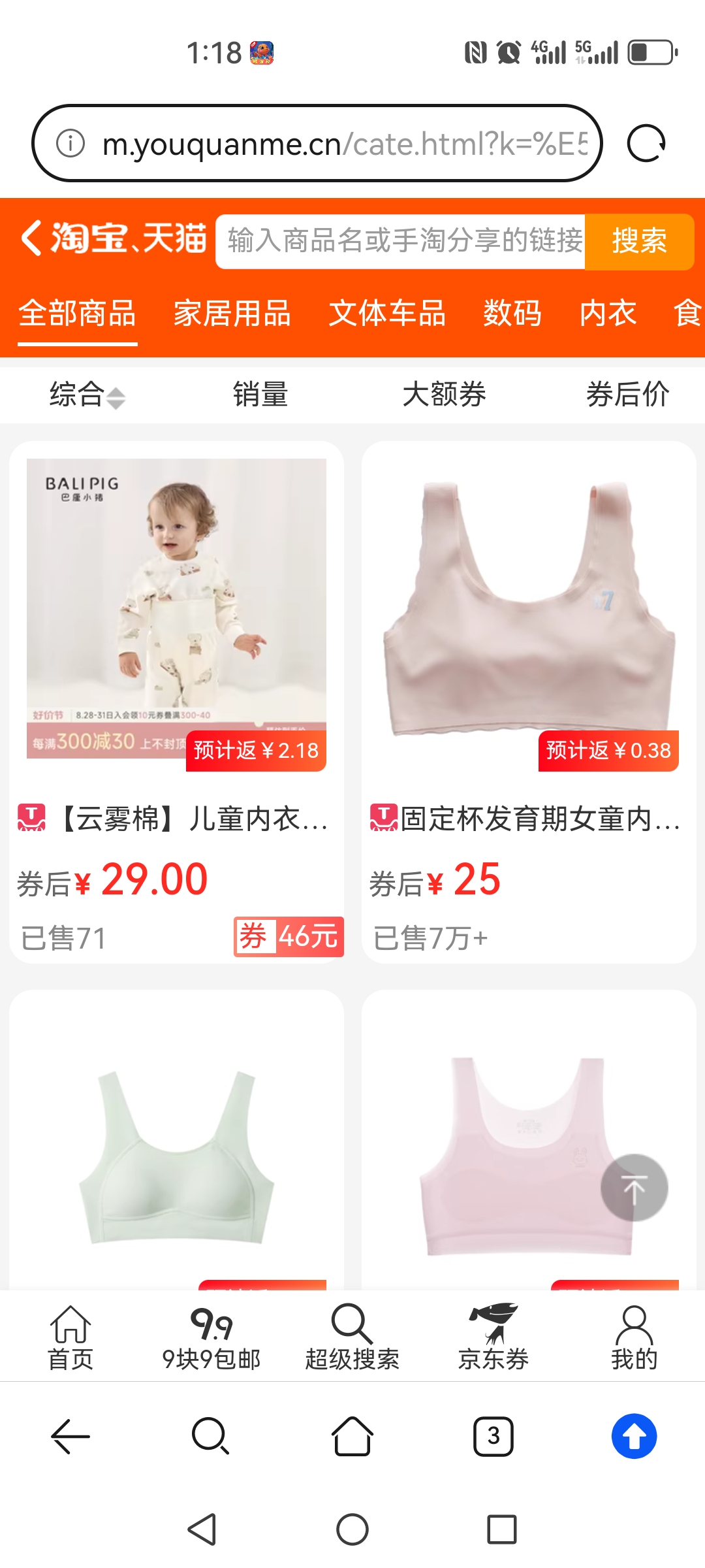 2、出来搜索的商品后,你可以点击推荐的更细分类、只看天猫或只看有券按钮,然后点击需要购买的商品。