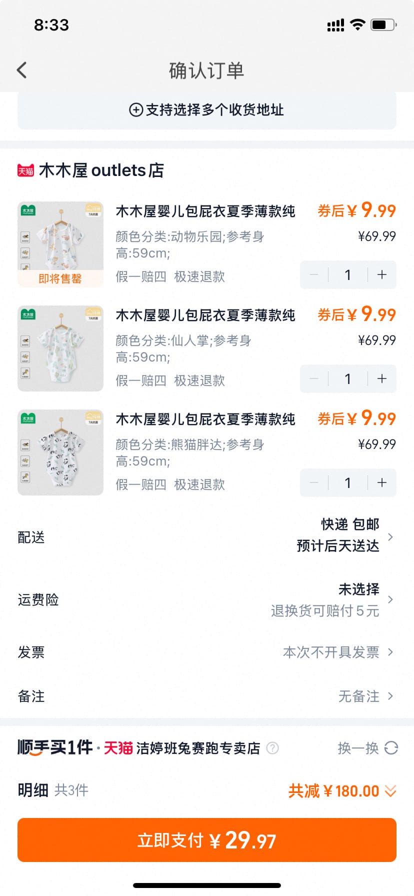 木木屋包屁衣夏季新生儿衣服 任选3件 折9.9/件